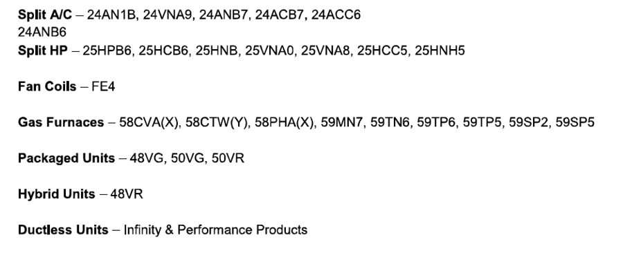For 2018, we are introducing a new customer satisfaction guarantee with the purchase of any of our high SEER unit products listed below.